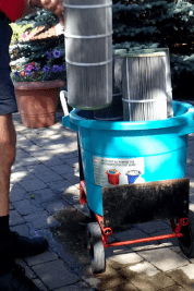 The problem with doing a soak is two-fold: finding a suitable container, and managing the weight of the container once it’s full of liquid. My pool filter has four cartridges, and they don’t fit inside a garbage can. I have a larger bin, but it’s not very high. Also, when you put four cylinders together, there’s a lot of empty space between them, so you need a lot of liquid. I’ve devised containers with flexible sides that conform to the cylinders (in my mind) but the problems of supporting everything and containing the liquid (safely!) in a structure that one can store between soaks are more than I care to deal with. One solution is to take them to be cleaned by to a pool company, which involves two trips and some expense.