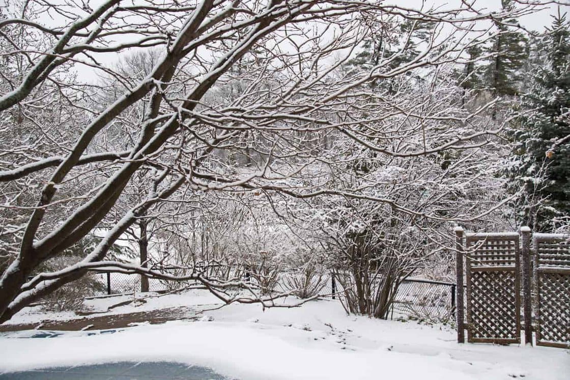 The large pots that we plant with annuals get moved at some point, and I trim the tops for yard waste, leaving the roots in the soil. I put the pots somewhere that won’t interfere with clearing a path in the snow, or, for that matter, getting in the way of piling up the snow that I move!
